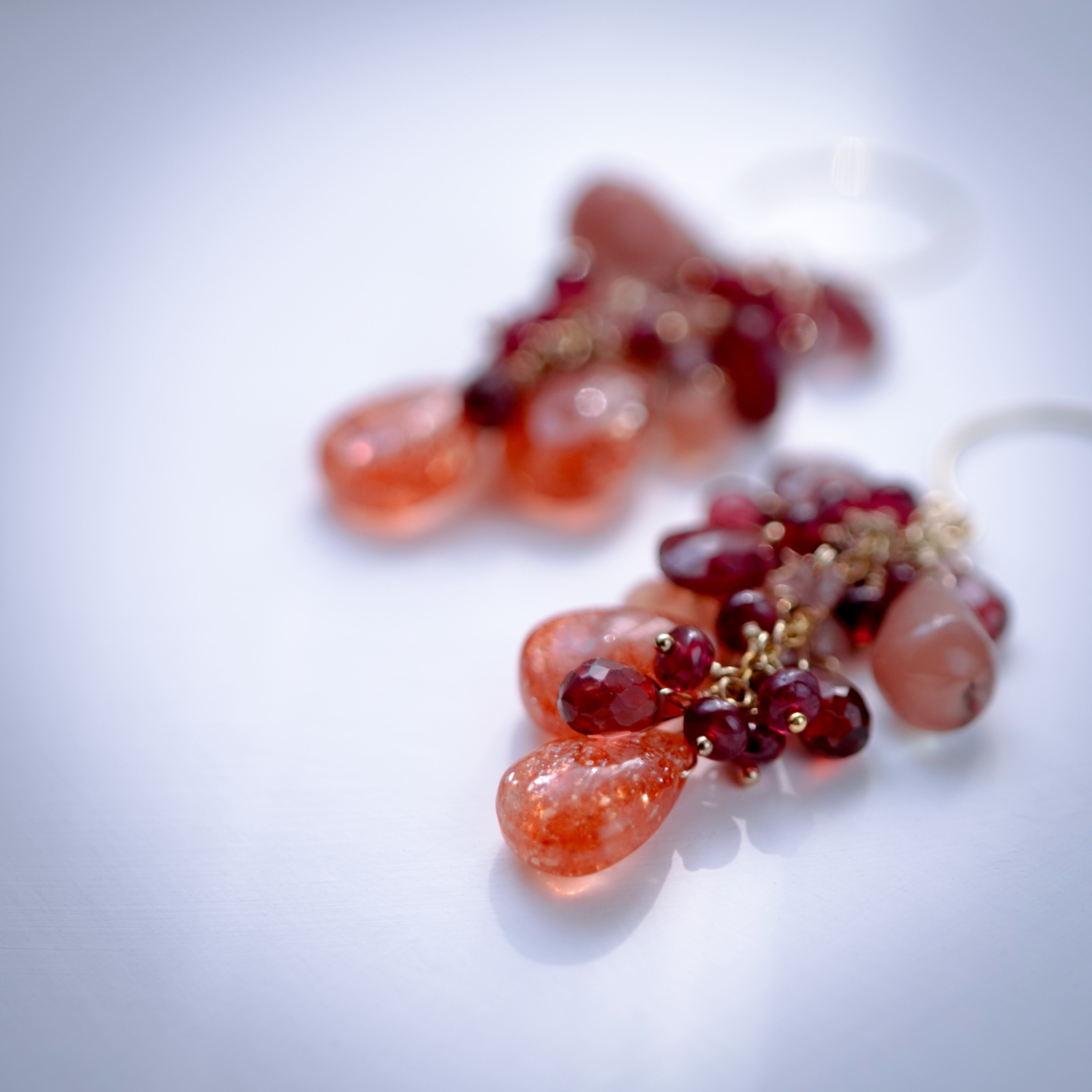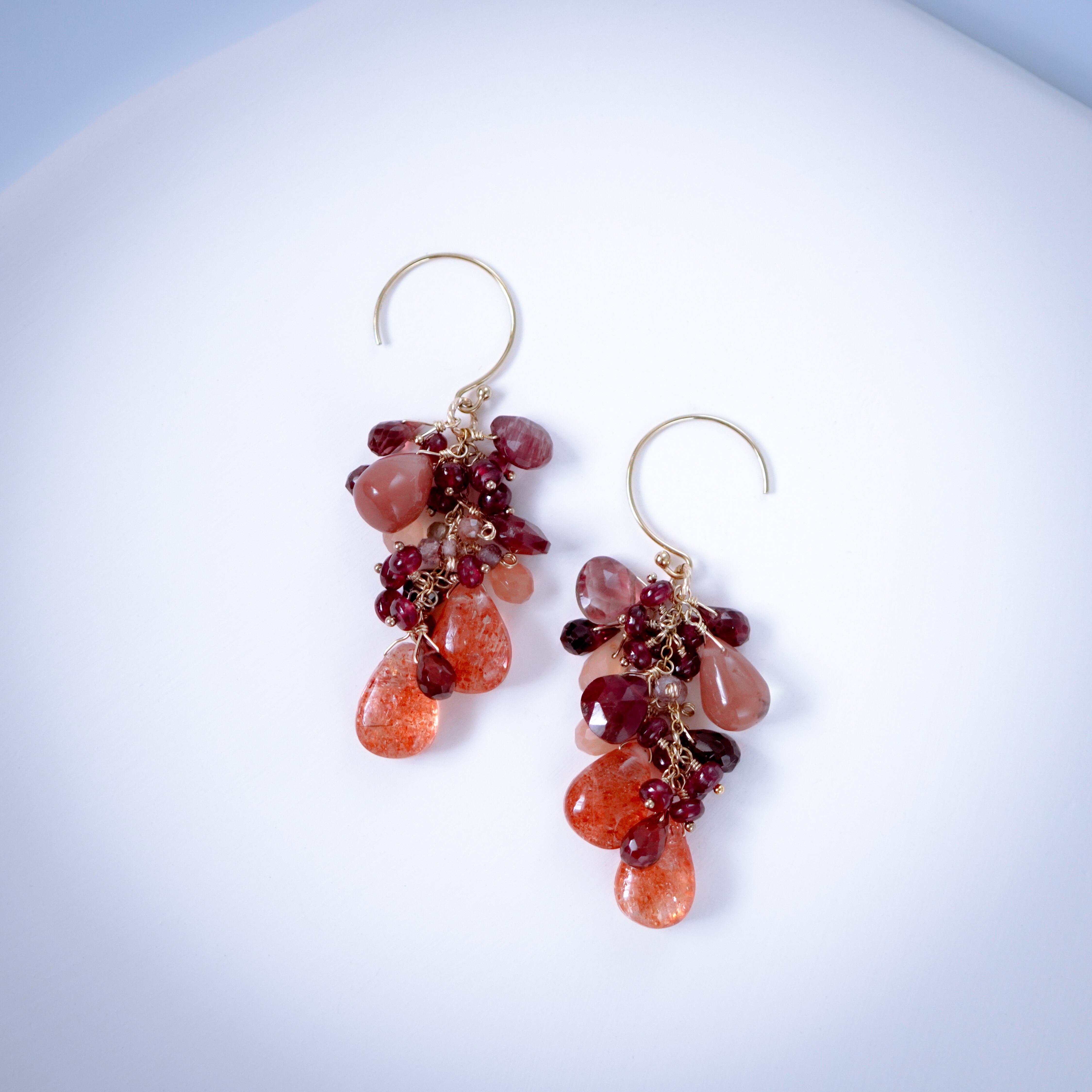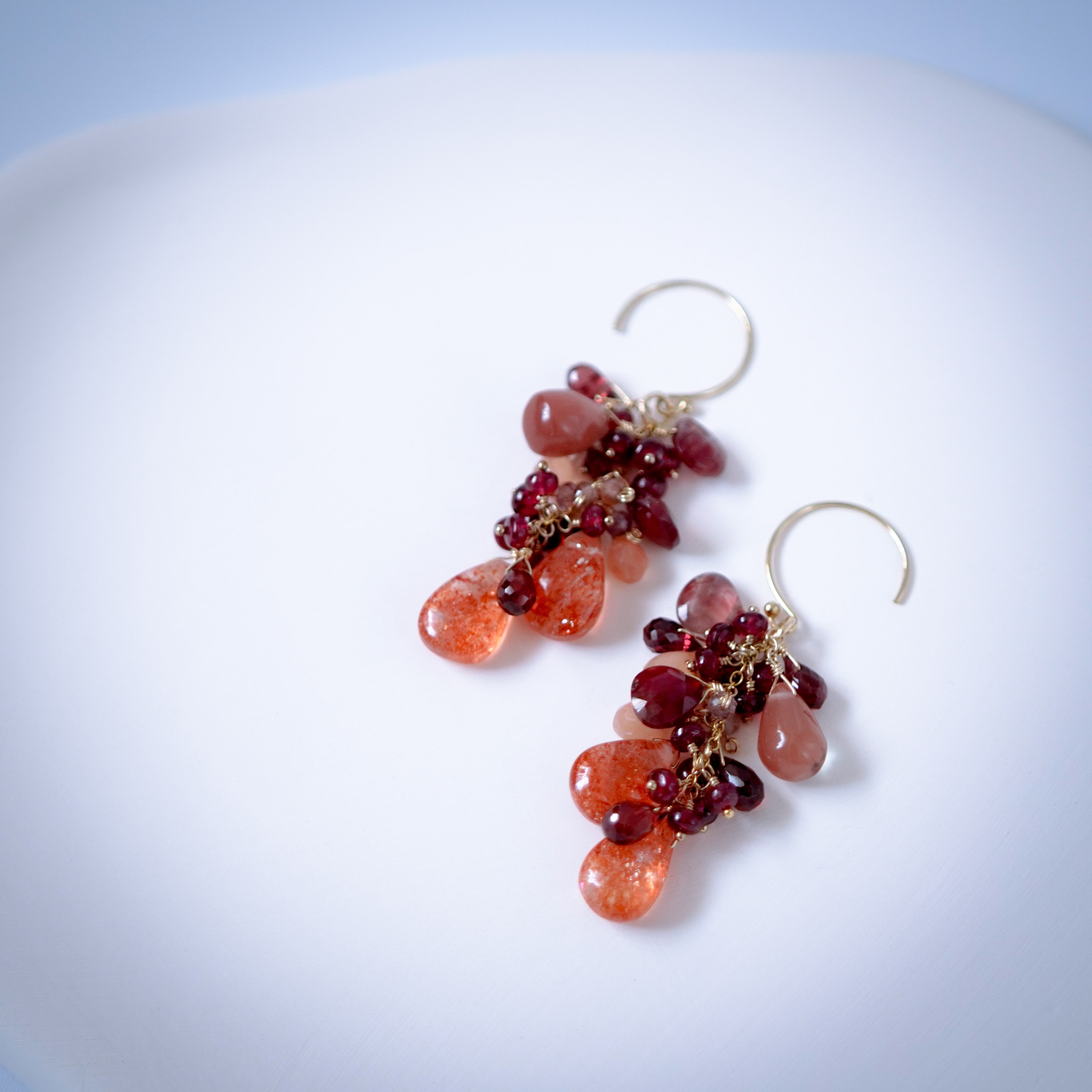 [ Materials ] 14kgf、レッドスピネル、アンデシン、サンストーン、モザンビークガーネット、ピーチムーンストーン、スピネル(イヤリング金具:ニッケルフリー、シリコン)